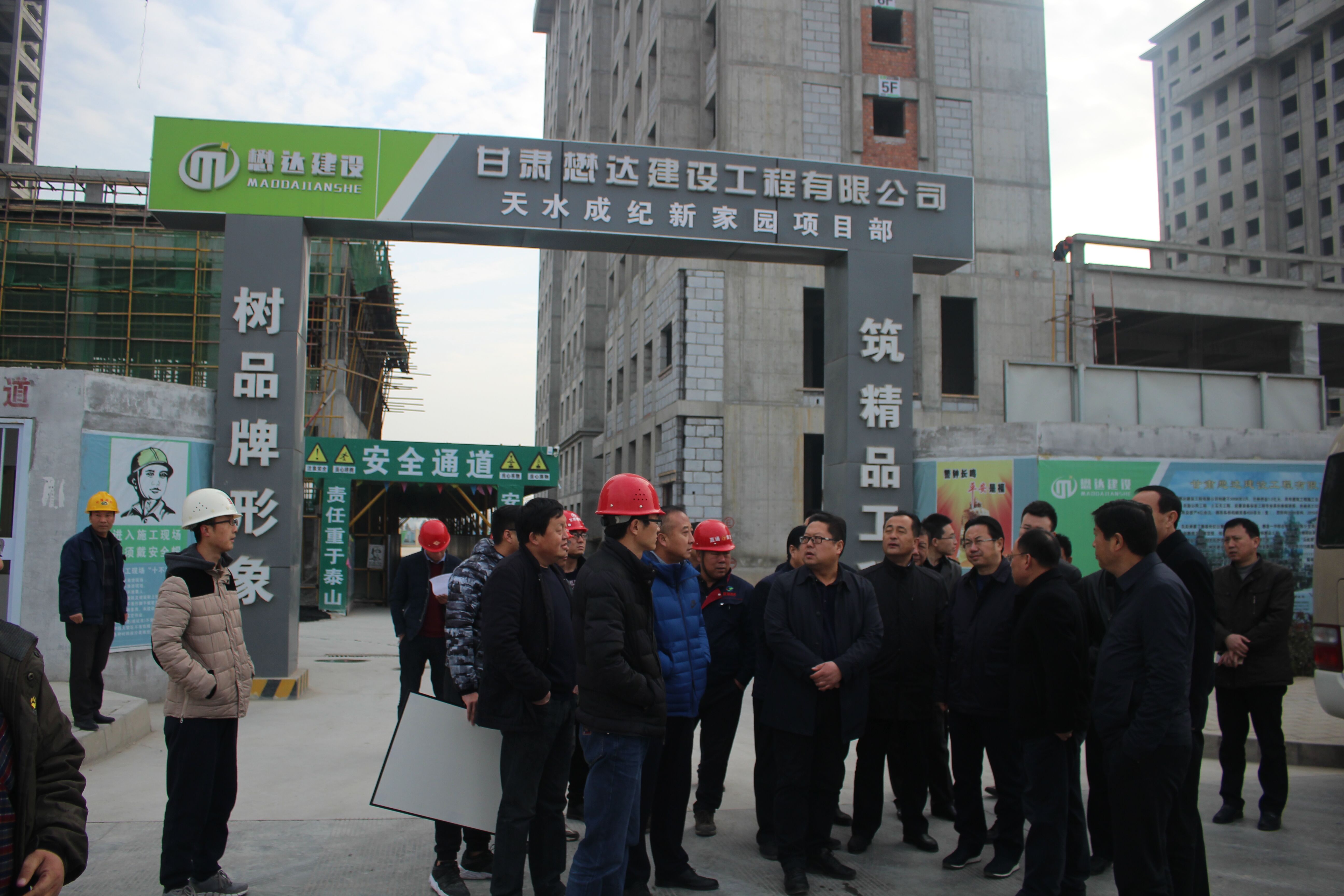 2016年12月7日上午,天水市副市長(zhǎng)何東帶領(lǐng)市直有關(guān)部門,來甘肅懋達(dá)建設(shè)工程有限公司承建的天水成紀(jì)新家園棚戶區(qū)改造項(xiàng)目一期工程五標(biāo)段檢查指導(dǎo)工作。
