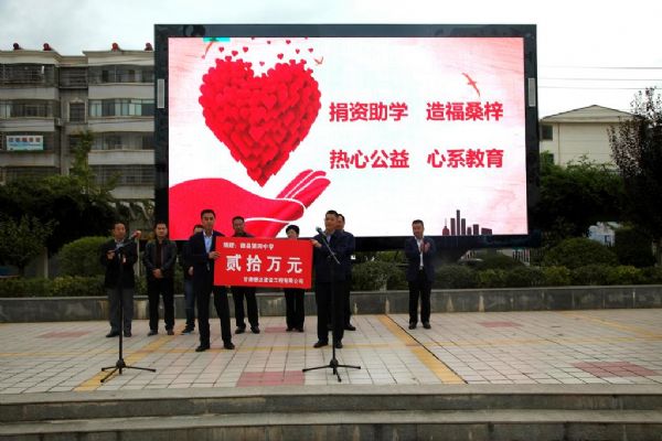 捐款儀式上,封曉成代表公司為徽縣四中現(xiàn)場(chǎng)捐款20萬(wàn)元,政府副縣長(zhǎng)趙海斌為公司贈(zèng)授“惟宏德隆”牌匾。封曉成表示,捐資雖少,卻凝聚著公司全體員工的愛心,公司在今后的發(fā)展中將一如既往地關(guān)注教育,將公司的愛心和善舉薪火相傳。