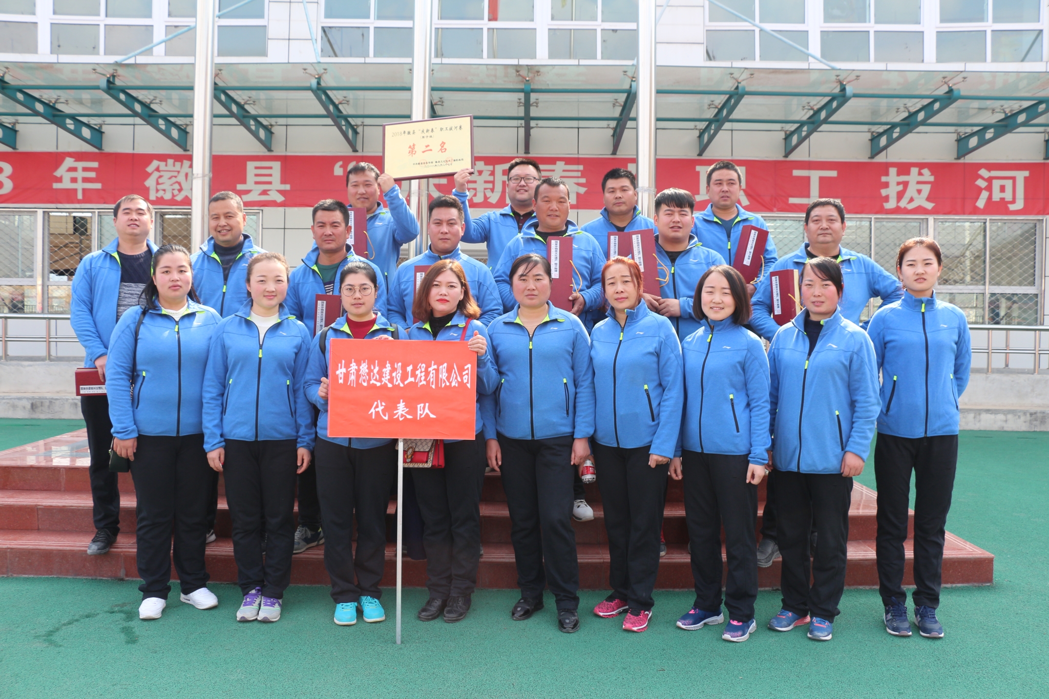 由中共徽縣委宣傳部、徽縣文化體育廣播影視局組織的2018年徽縣“慶新春”職工拔河比賽于2月27日上午在徽縣體育中心舉行,共46支隊伍參賽(男子組26隊,女子組20隊)。甘肅懋達建設(shè)工程有限公司組織男、女代表隊參賽。