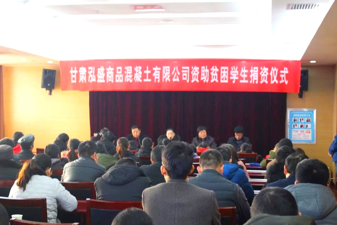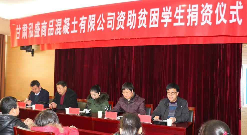 1月11日下午,甘肅泓盛商品混凝土有限公司資助貧困學(xué)生捐資儀式在徽縣政府綜合樓20樓2號(hào)會(huì)議室隆重舉行。縣教育局副局長(zhǎng)黃潤(rùn)珍、團(tuán)縣委副書記李姣、縣學(xué)生資助中心主任張?zhí)嵭馈⒐绢I(lǐng)導(dǎo)張志強(qiáng)、尹向宏出席儀式,受助學(xué)生、學(xué)生家長(zhǎng)以及有關(guān)單位負(fù)責(zé)人共計(jì)80余人參加儀式。