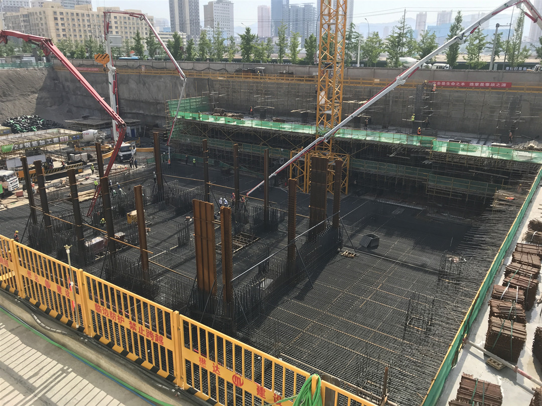 近日,公司承建的首座超高層項(xiàng)目—蘭州聯(lián)想科技城順利進(jìn)行了A塔樓筏板13295m3大體積砼的澆筑工作。