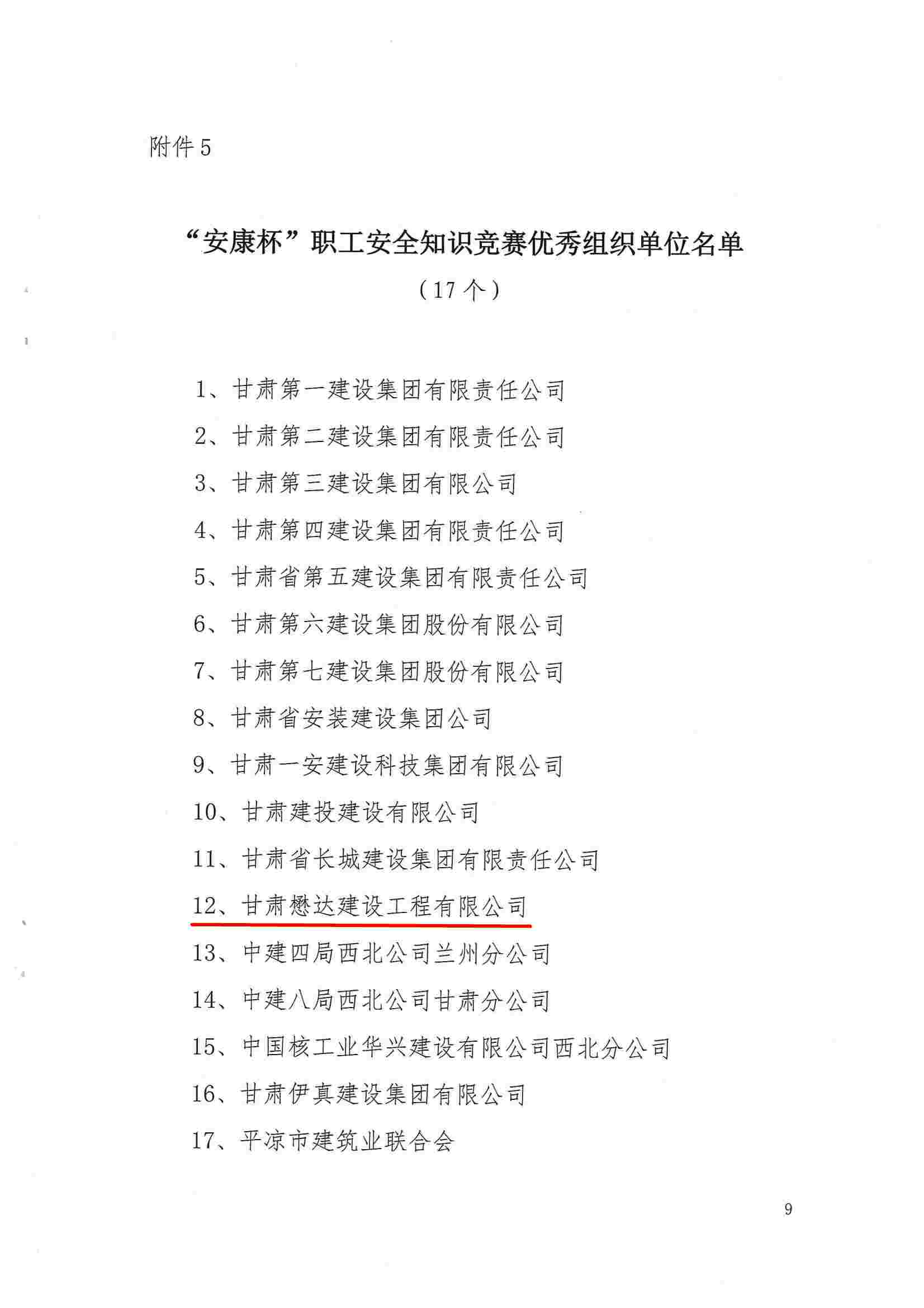 近日,甘肅省建設(shè)工會(huì)召開(kāi)表彰大會(huì),對(duì)在2023年度建設(shè)行業(yè)“安康杯”職工安全知識(shí)競(jìng)賽暨安全文化宣傳活動(dòng)中成績(jī)突出的企業(yè)、班組及個(gè)人進(jìn)行表彰獎(jiǎng)勵(lì)。