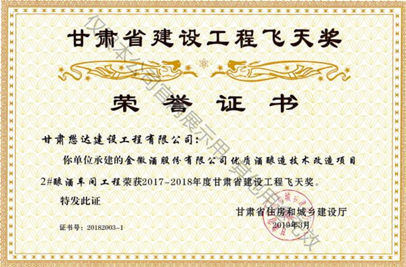 金徽酒技改項(xiàng)目2#釀酒車間工程---甘肅省建設(shè)工程飛天獎(jiǎng)