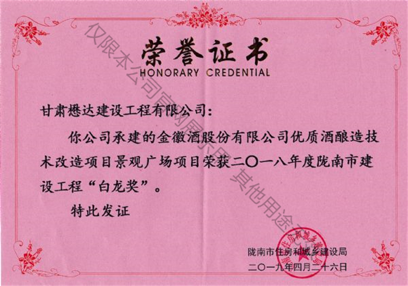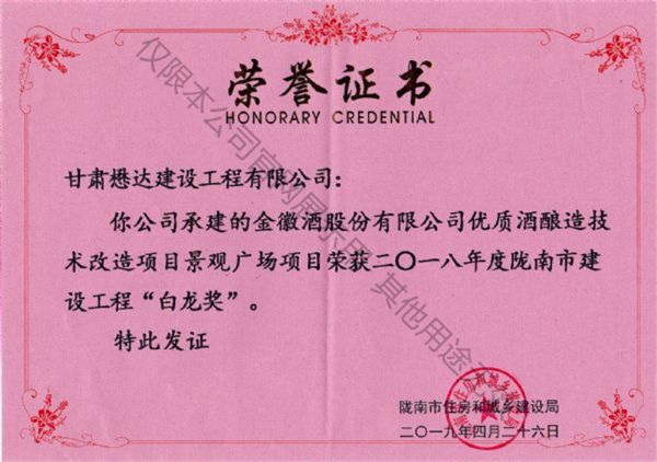 金徽酒技改項(xiàng)目景觀廣場工程---2018年度隴南市建設(shè)工程“白龍獎(jiǎng)”