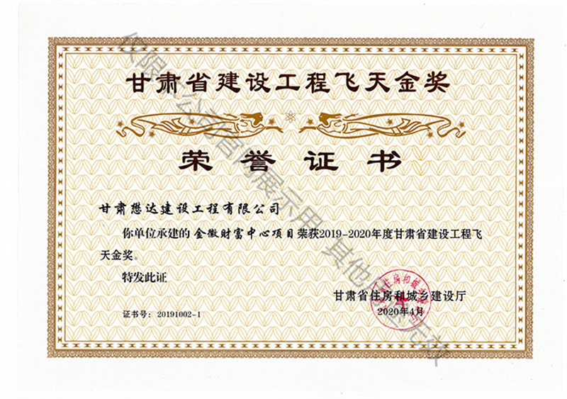 金徽財富中心項目——甘肅省建設(shè)工程飛天金獎
