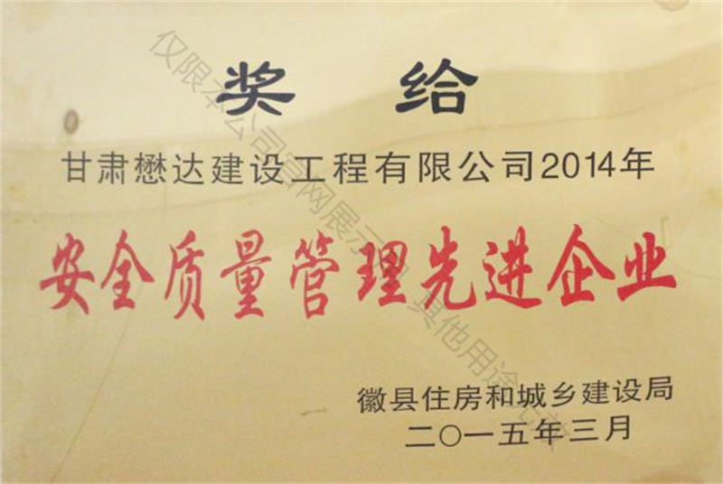 2014年安全質(zhì)量管理先進(jìn)企業(yè)