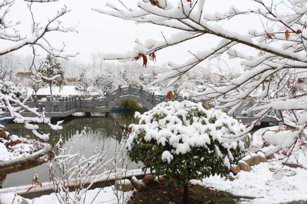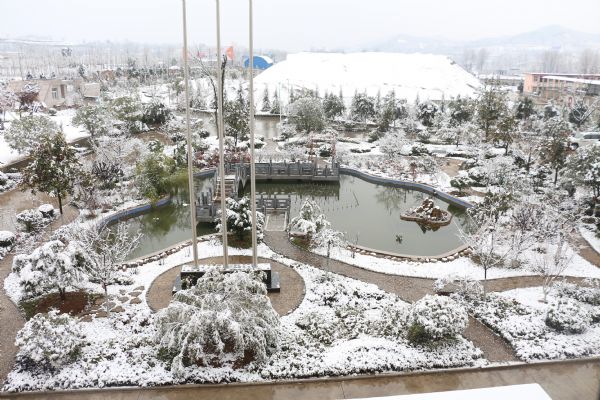 初春的第一場雪,把徽縣這座美麗的江南小城裝扮的更加俊俏了,然而懋達(dá)公司院內(nèi)的花花草草,把春雪的美詮釋的更加完美。