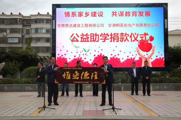 甘肅懋達(dá)建設(shè)工程有限公司自成立以來(lái),始終堅(jiān)持“誠(chéng)信為本、質(zhì)量第一、追求卓越、服務(wù)社會(huì)”的企業(yè)宗旨,先后承建了蘭州亞泉灣、天水成紀(jì)新家園、金徽酒技改等一批省內(nèi)重點(diǎn)項(xiàng)目,得到了社會(huì)的認(rèn)可。近年來(lái),我們積極響應(yīng)縣委、政府的倡議,一直把關(guān)注社會(huì)公益事業(yè)、重視社會(huì)責(zé)任、做優(yōu)秀企業(yè)當(dāng)作企業(yè)文化的重要組成部分,參與精準(zhǔn)扶貧、教育幫扶等社會(huì)公益事業(yè),以實(shí)際行動(dòng)回饋社會(huì),傳遞正能量,履行社會(huì)責(zé)任。