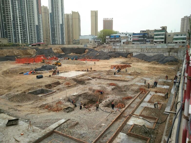 工程進度:1#樓正在進行基礎(chǔ)墊層、磚胎膜施工,5#樓已完成塔吊基礎(chǔ)磚模砌筑。