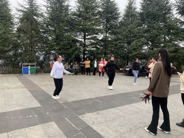 隨后,女職工們在山頂廣場組織了跳繩、踢毽子等自由活動(dòng),在歡聲笑語中度過了愉快的時(shí)光。
