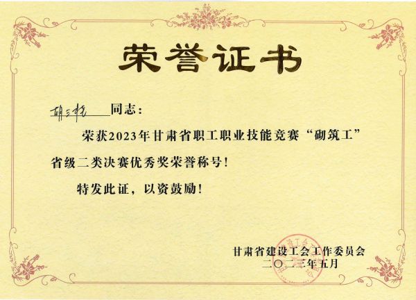 5月16-17日,2023年甘肅省職工職業(yè)技能競(jìng)賽“砌筑工”省級(jí)二類(lèi)決賽在天水市舉行,懋達(dá)建設(shè)崔海龍、胡三桂在全省多家建筑企業(yè)層層選拔的39名選手中脫穎而出,分別獲得三等獎(jiǎng)、優(yōu)秀獎(jiǎng)的好成績(jī)。